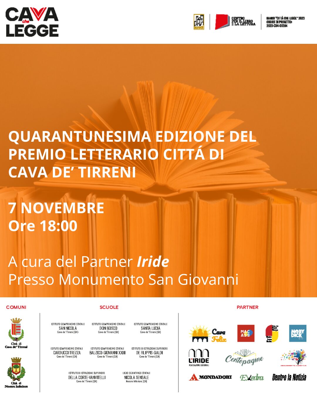 Il progetto Cava che Legge ospita una delle tappe più significative del panorama culturale cittadino: la 41ª edizione del Premio Letterario “Città di Cava de’ Tirreni”, promossa dall’Associazione L’Iride.